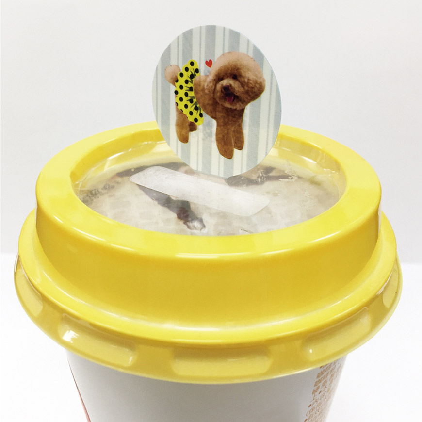 - Promotional pop-up stickers for beverages.