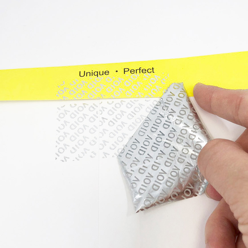 VOID Anti Counterfeit Label provides tamper-evident and anti-counterfeit protection. Custom background patterns or hidden texts can be embedded, and once the label is removed, a destructible message or full-surface VOID text will appear on the applied surface.