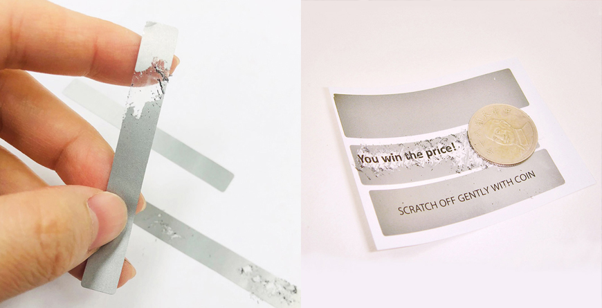 Scratch-Off Sticker is a functional and interactive finishing technique in which a special scratch-off ink is applied to a designated area, allowing hidden information to be revealed with a simple scratch. This feature is widely used for lottery or promotional stickers, interactive marketing labels, serial number verification labels, security labels, or password concealment stickers. It not only enhances consumer engagement but also adds security and unique value to the sticker. With Kang Yang's professional production process and precise coating technology, the scratch-off layer adheres evenly and securely, ensuring a high-quality interactive experience and reliable anti-counterfeit protection.