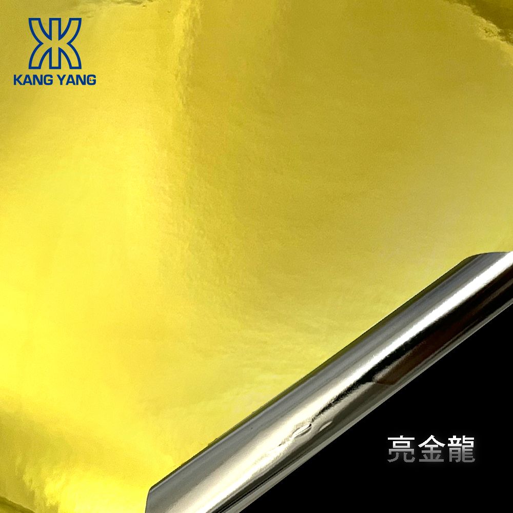亮金龍貼紙使用亮金色的紙材,表面呈現華麗高反光效果,具有強烈的金屬視覺感,具有耐熱、防水,防潮、撕不破等特性,貼紙表面可進行上膜處理。